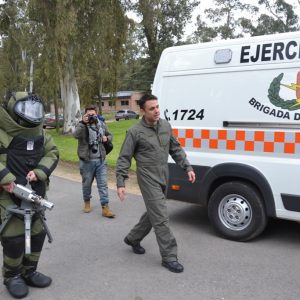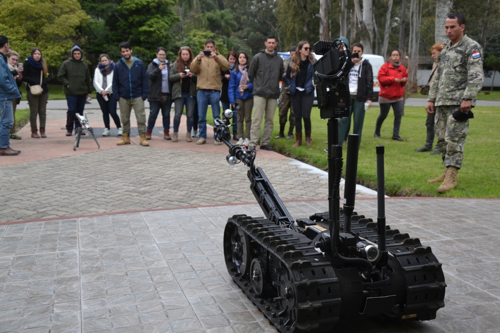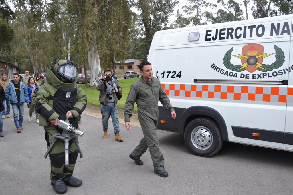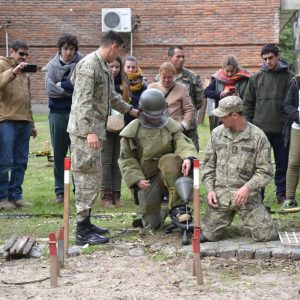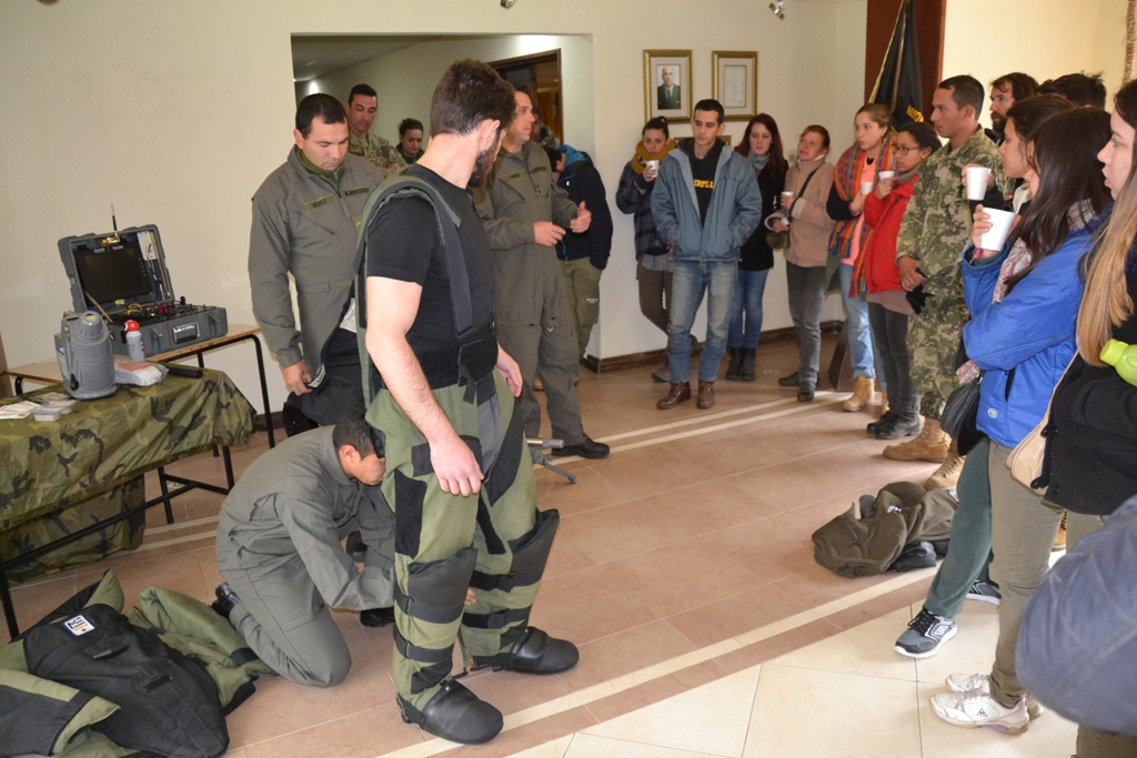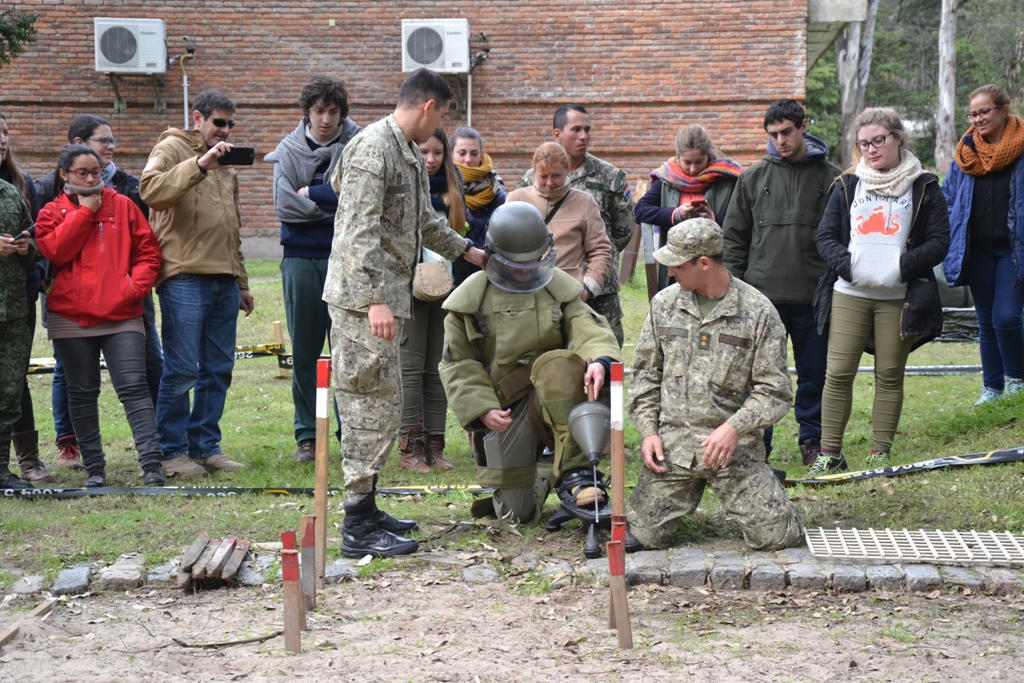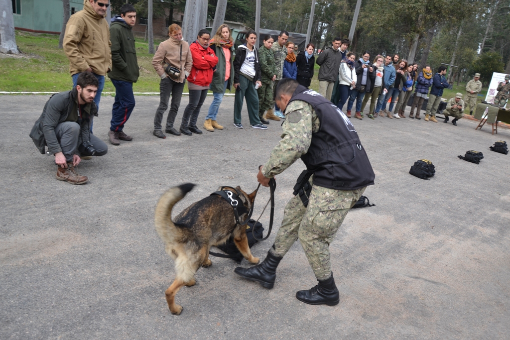 On the way back from the Camp, the students visited the Engineers Instruction Center, where they received instruction about explosives and minefields; demonstrations of the K9 Military Group of work with dogs in charge of the Brigade of Infantry No 1 “General Eugenio Garzon”, and the Terrorist Artifacts Deactivation Team (EDAT) belonging to the Material and Weapon Service (SMA).