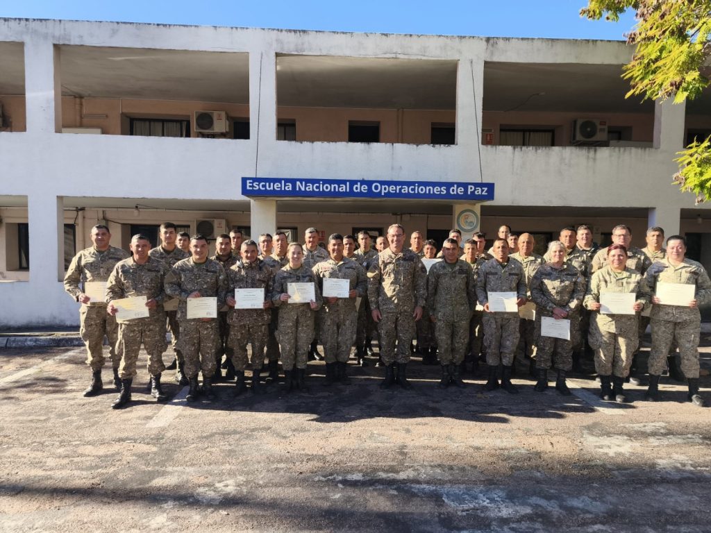 Asimismo, dentro de las actividades de Instrucción y Entrenamiento se contó con la destacada presencia de la Cónsul de la Embajada de Egipto Sra. Miral Ashraf, quien brindo una charla sobre la temática “Reseña Geográfica y Política de la región (Historia, Cultura, Política y Religión)”. Participaron un total de 33 alumnos (2 SS.OO. y 28 P/S del Ejército Nacional; 1 P/S del M.D.N., 1 P/S de la D.N.S.FF.AA. y 1 P/S del S.R.P.FF.AA.).