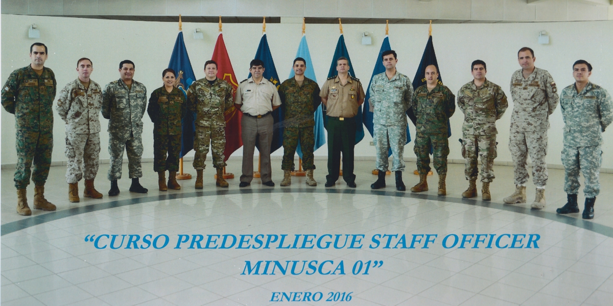 La 01ª edición del curso de Oficiales Estado Mayor en Misión de Naciones Unidas (MINUSCA 01) se realizó en Santiago de Chile – Chile, entre los días 18 al 29 de enero de 2016. Este curso preparó a individuos para cumplir tareas como Oficial de Estado Mayor del Cuartel General de una Fuerza de Paz. Estuvo enfocado en preparar a integrantes de las Fuerzas Armadas de ése país, que serán desplegados en el África, muy probablemente en la República Centroafricana (por primera vez). Participaron del mismo 11 alumnos chilenos.
