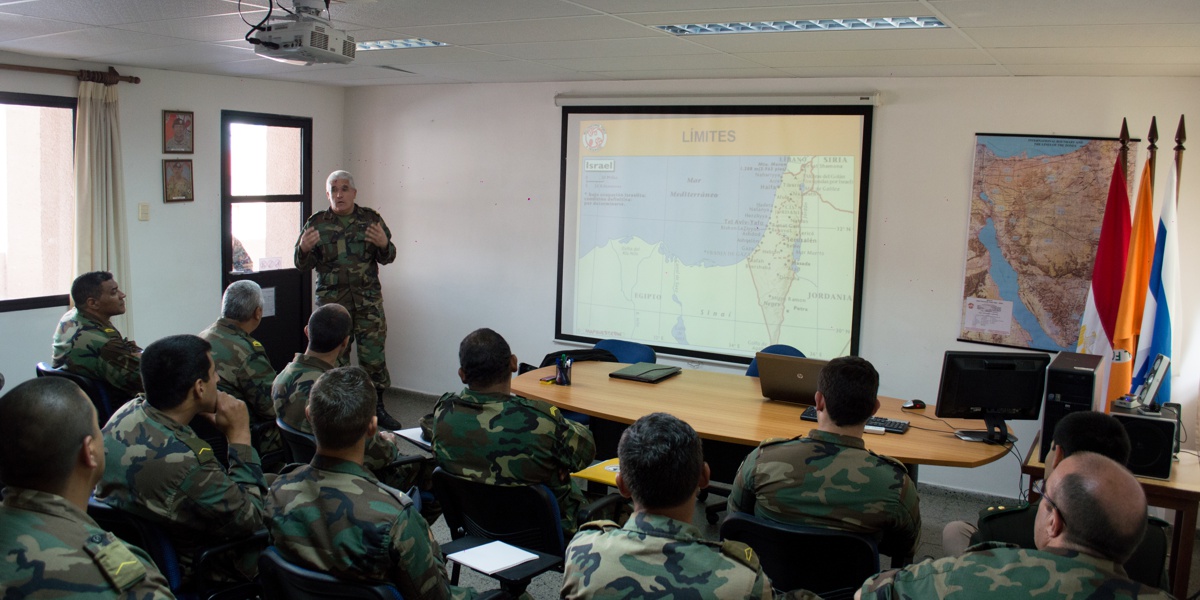 Los tópicos desarrollados en clase versaron sobre las funciones que realizan los integrantes de la MFO una vez desplegados en la Península del Sinaí.